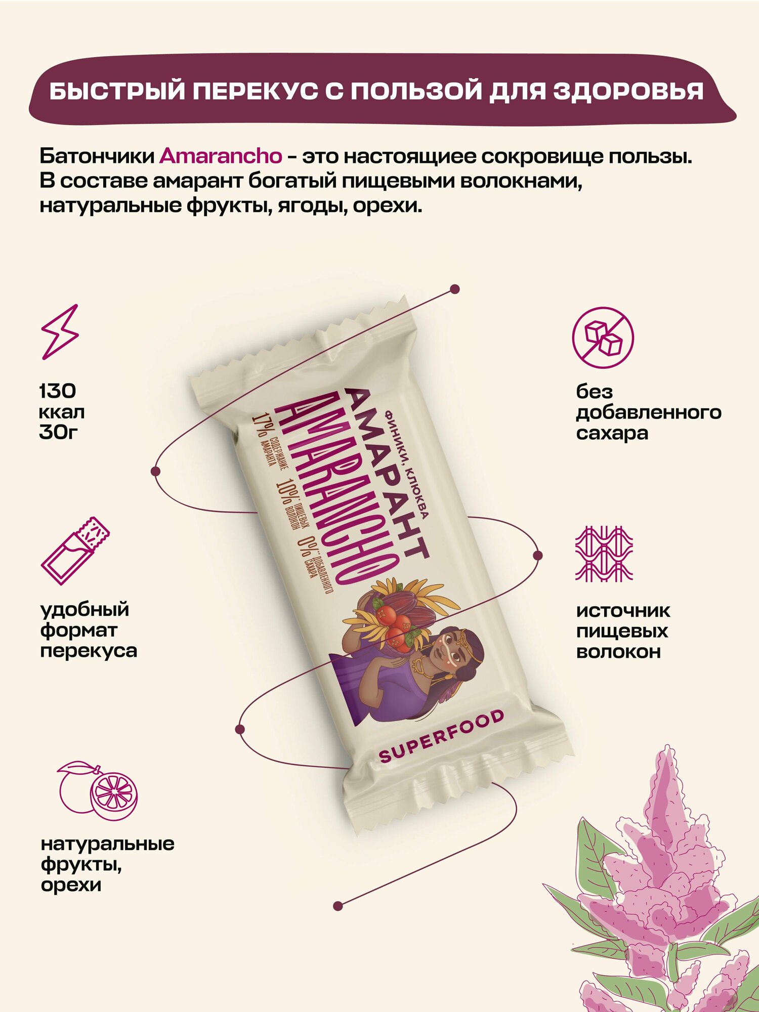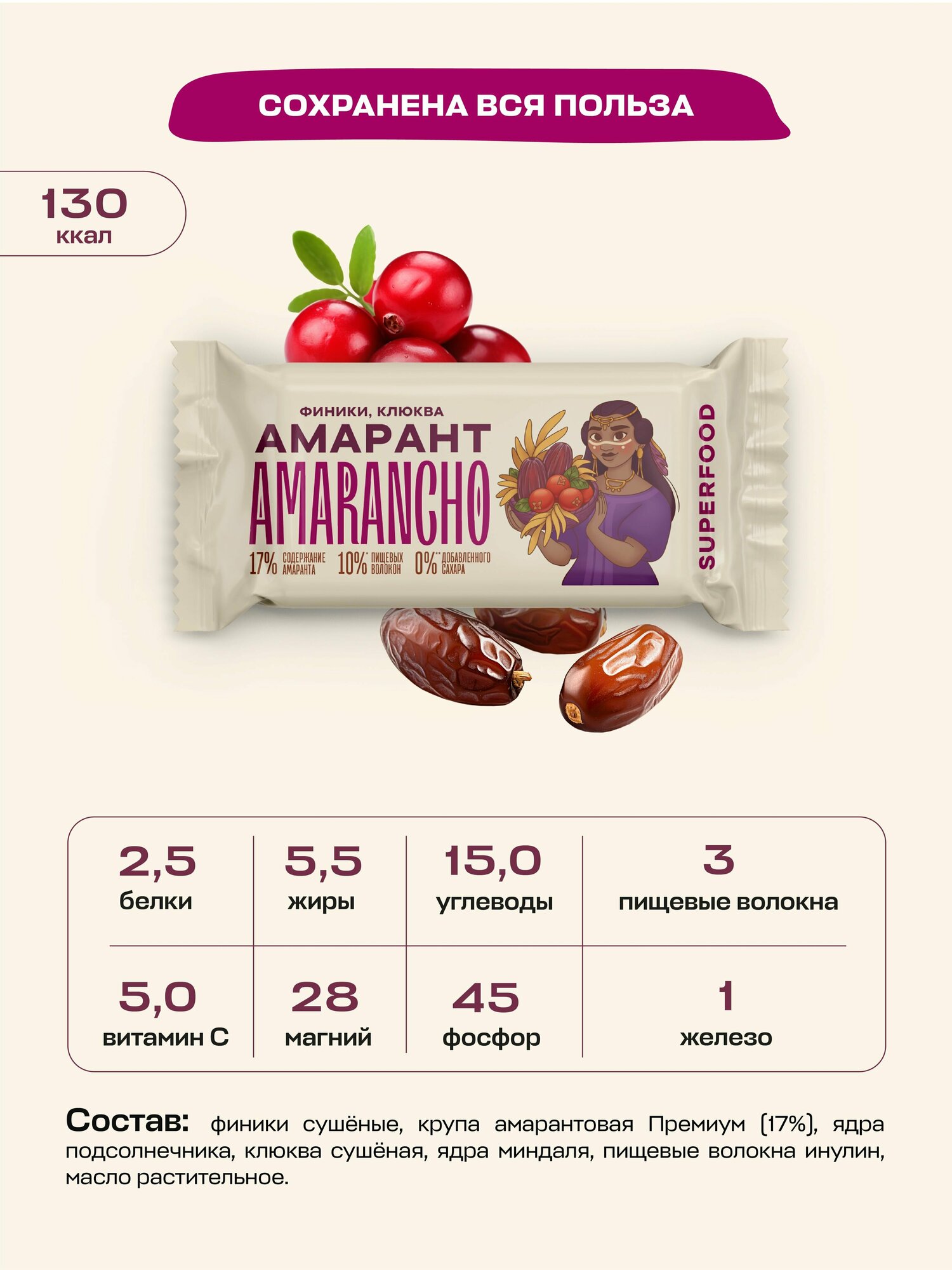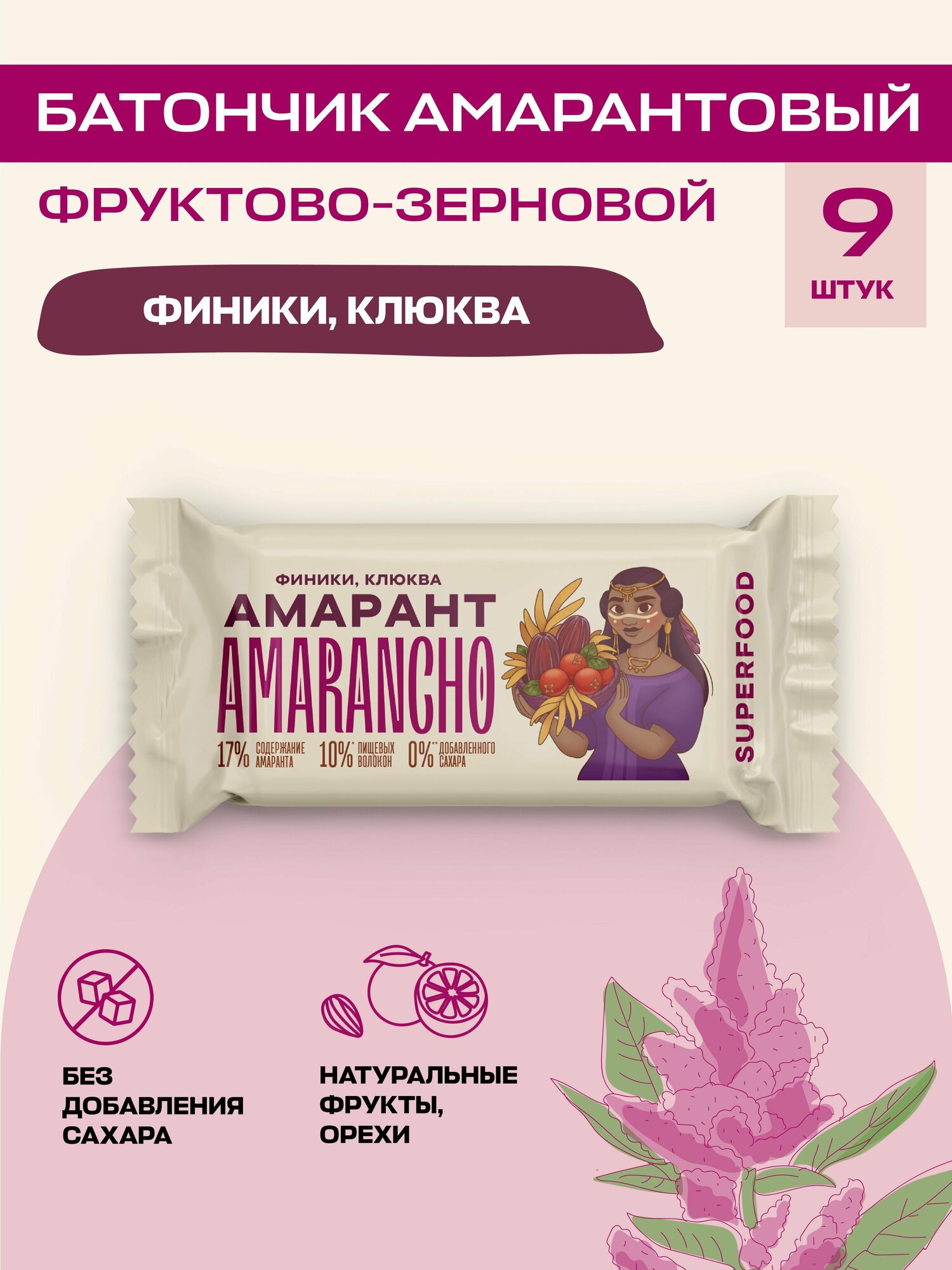 Батончики фруктово-зерновые Amarancho, Шоу-бокс 9 шт, амарант, финики, клюква ПП батончики без сахара интересное: