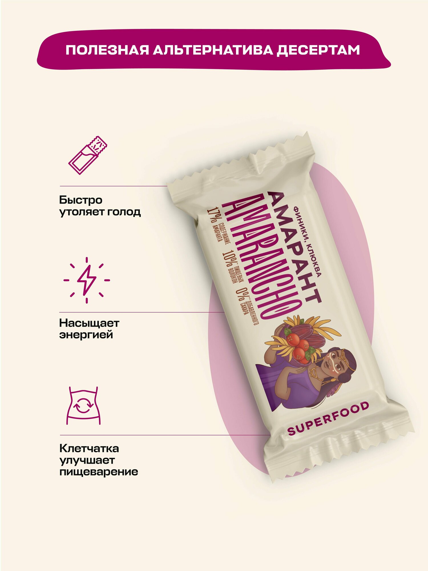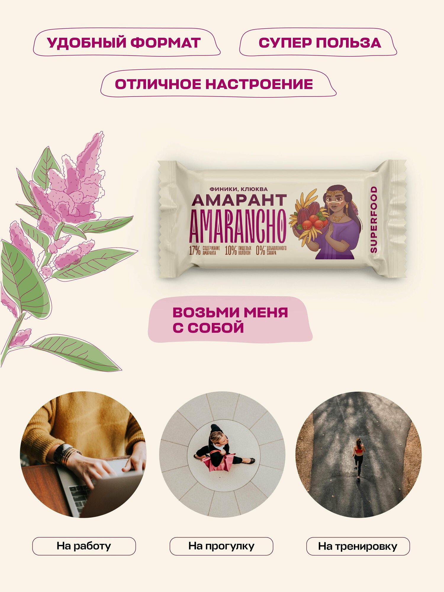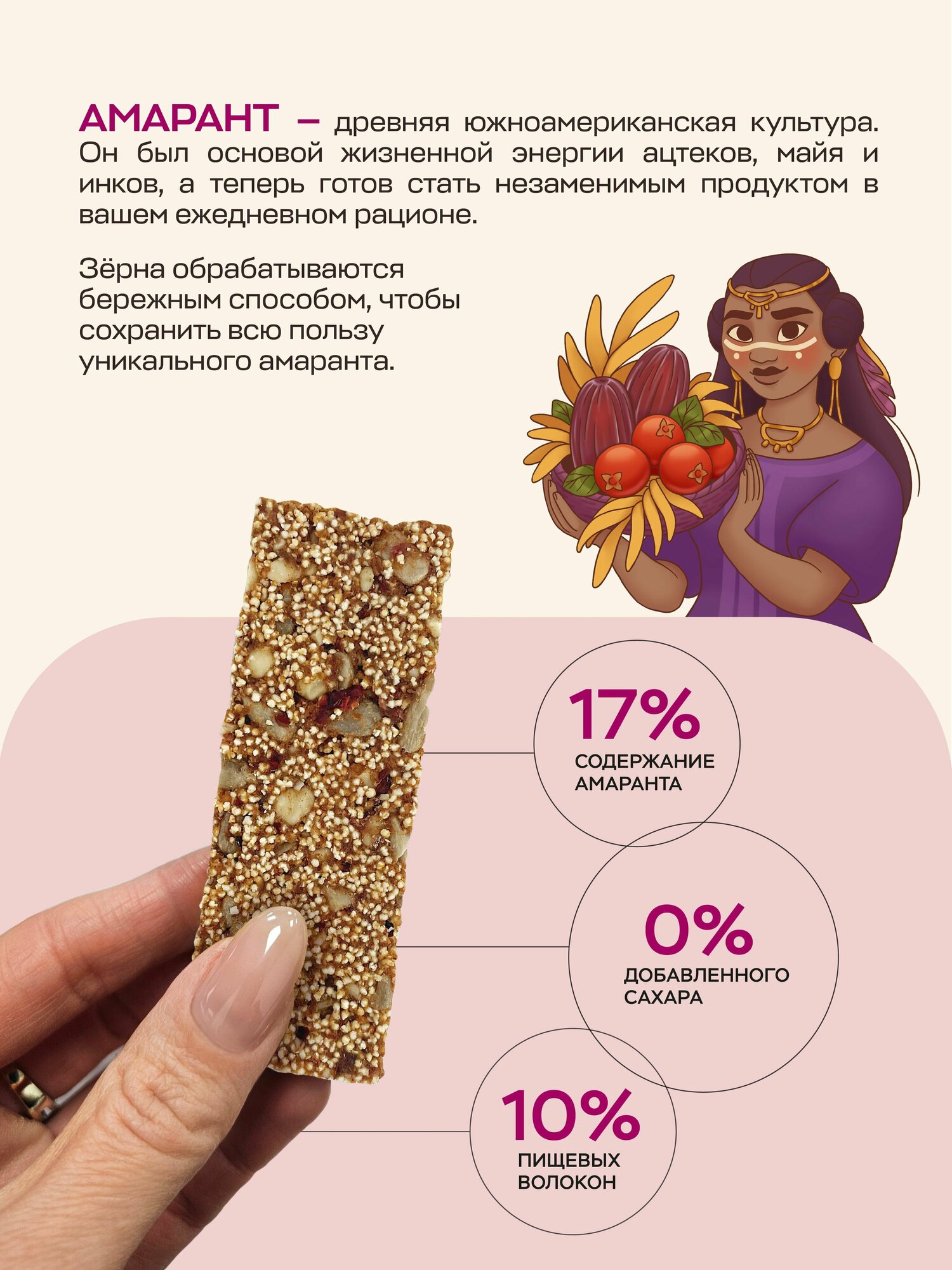Батончики фруктово-зерновые Amarancho, Шоу-бокс 9 шт, амарант, финики, клюква ПП батончики без сахара интересное: