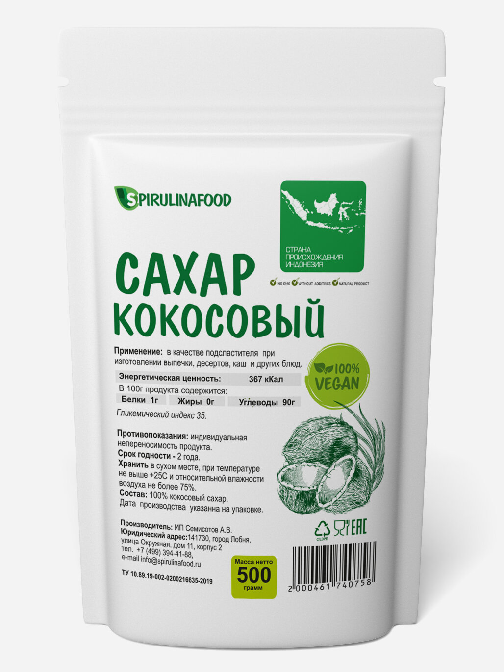 | Состав | 100% кокосовый сахар |