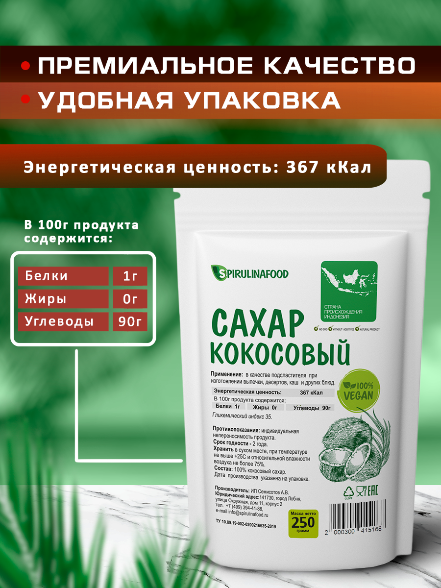| Состав | 100% кокосовый сахар |