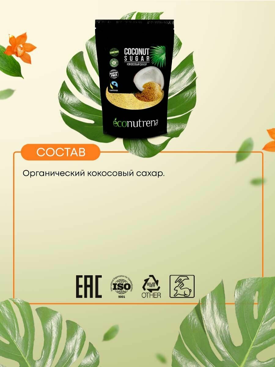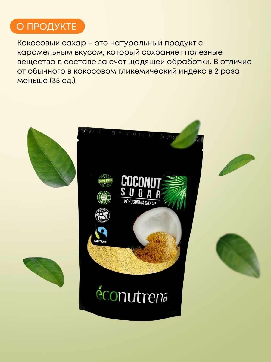 Кокосовый сахар / сахарный песок органический для веганов светлый дой-пак Econutrena, 250г интересное: