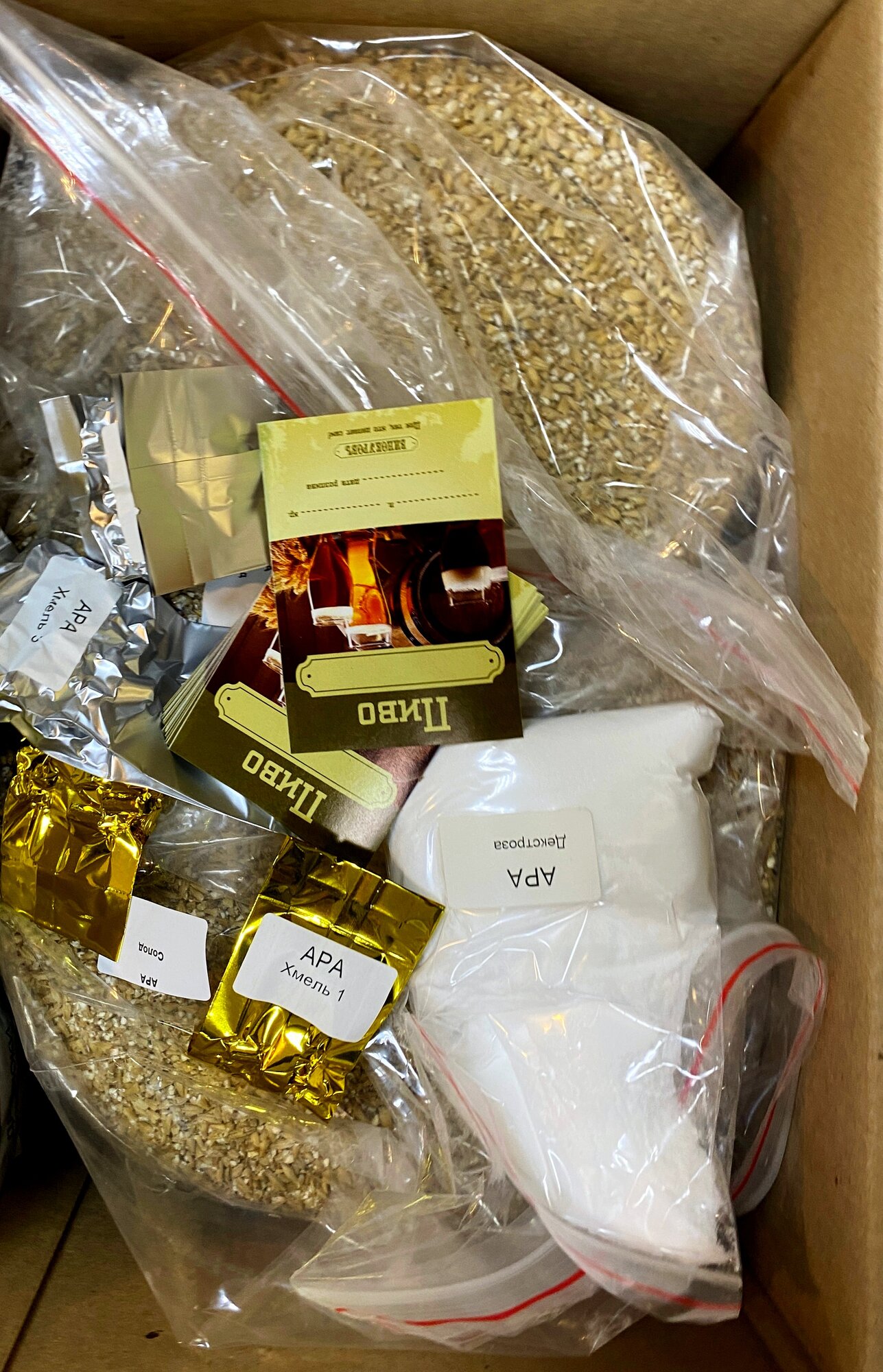 | Состав | Солод светлый, солод пшеничный, специальный солод, общим весом 5,7 кг., хмель, осветлитель, дрожжи пивные, декстроза. |