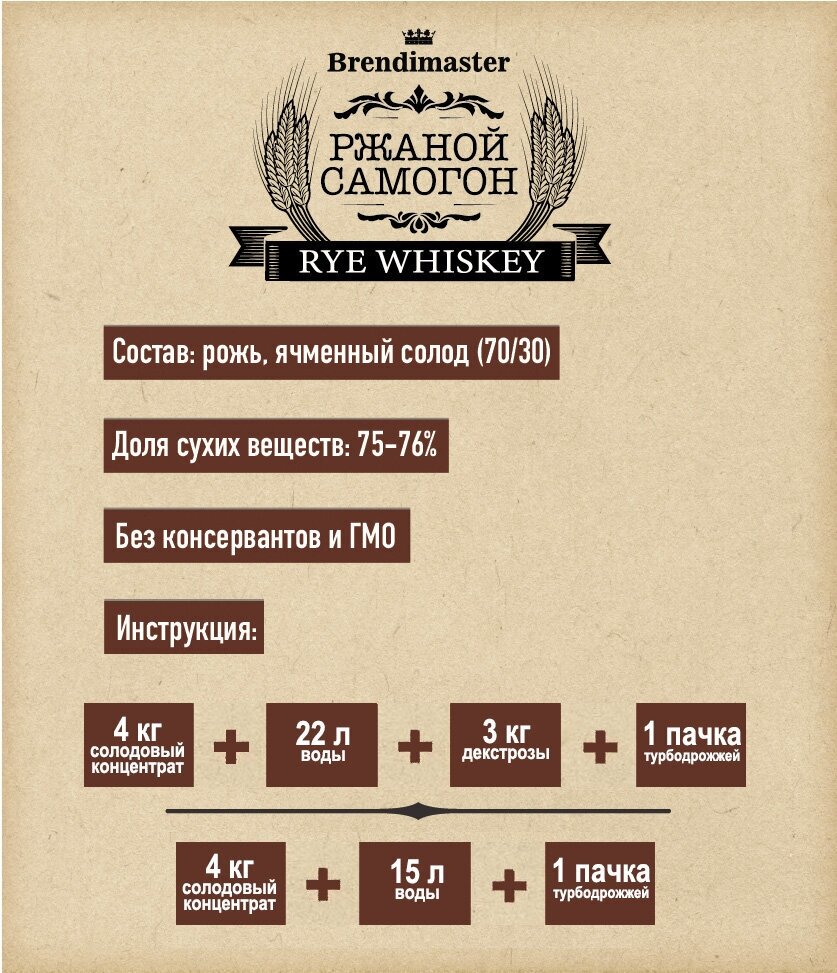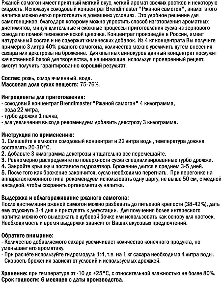 Солодовый концентрат Brendimaster "Ржаной самогон", 4 кг интересное: