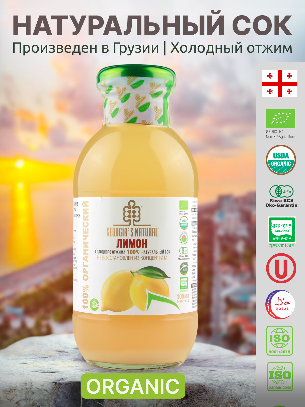 Купить Лимонный сок холодного отжима натуральный "GEORGIA'S NATURAL" ст/б 300мл (Грузия)