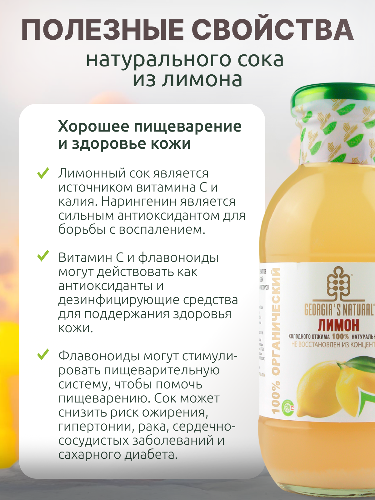 Лимонный сок холодного отжима натуральный "GEORGIA'S NATURAL" ст/б 300мл (Грузия) интересное:
