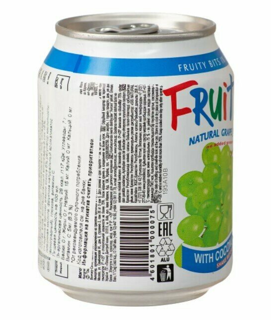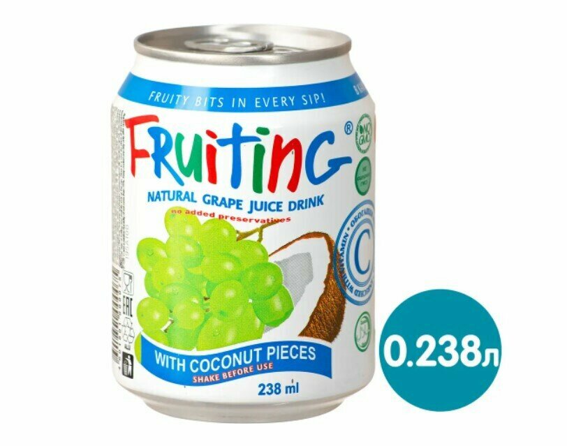 Напиток сокосодержащий Fruiting из сока винограда с кусочками кокоса, 4 шт х 238 мл интересное: