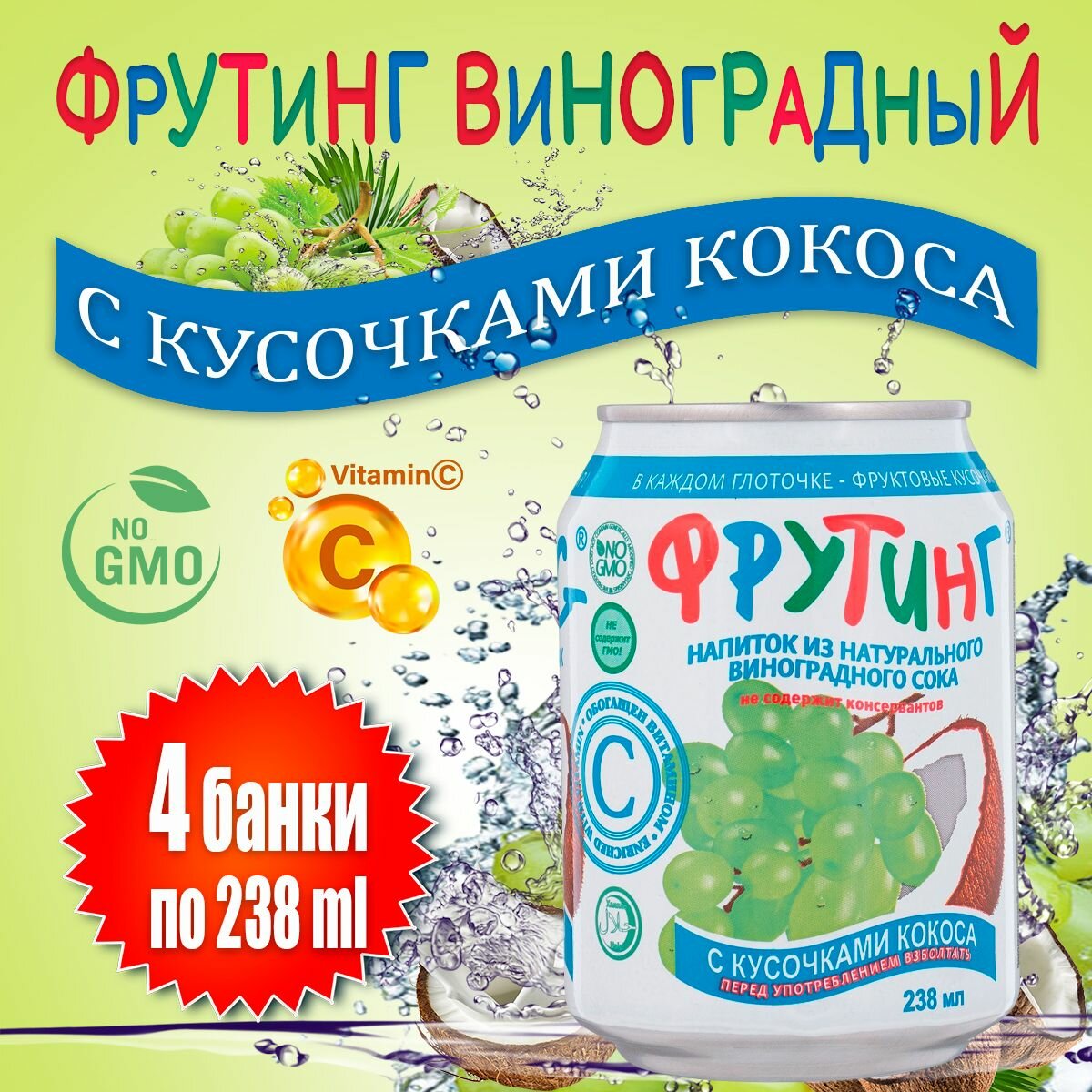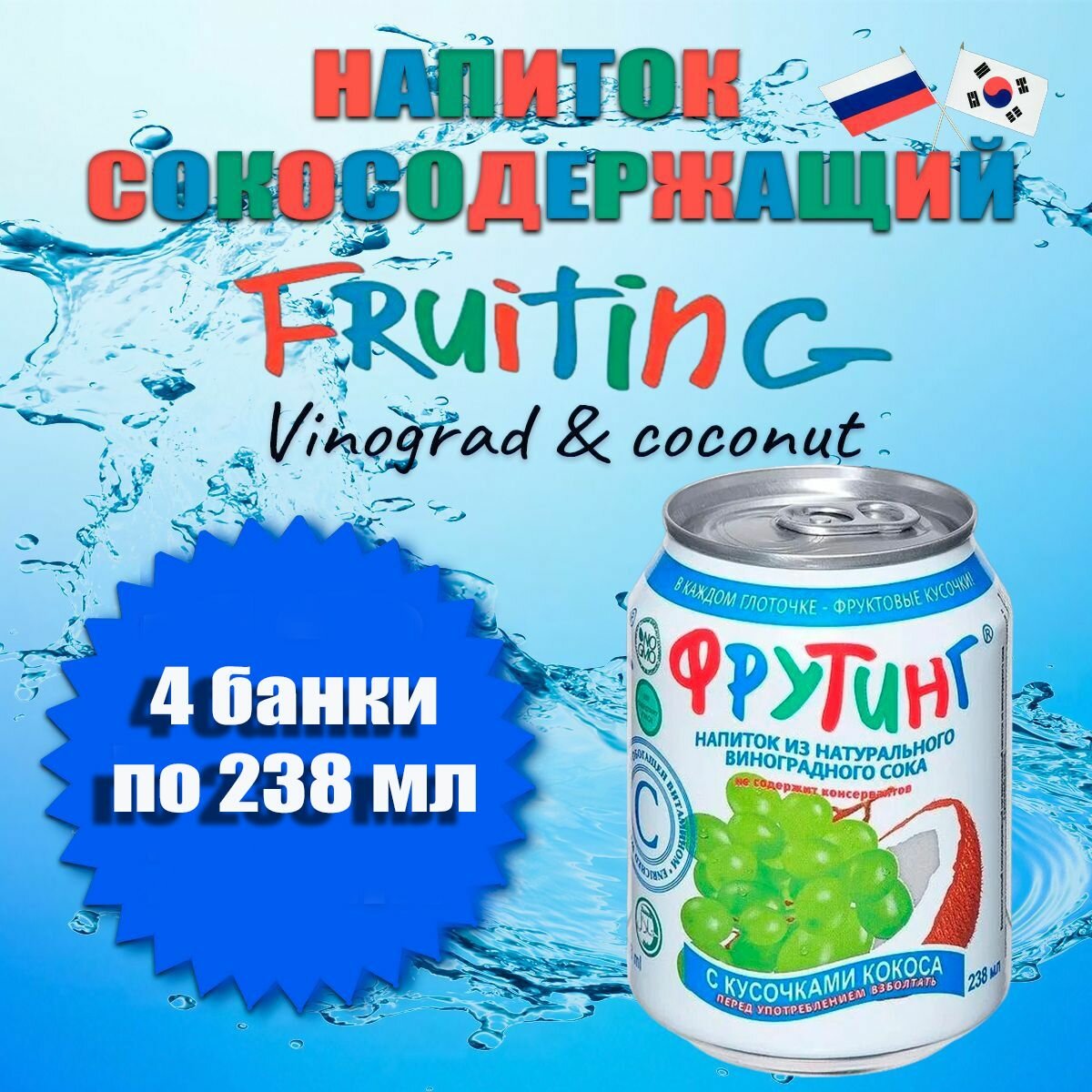 Купить Напиток сокосодержащий Fruiting из сока винограда с кусочками кокоса, 4 шт х 238 мл