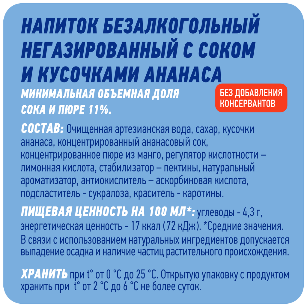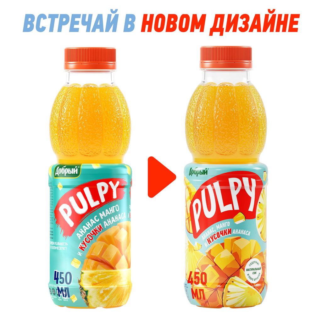 Напиток сокосодержащий Pulpy Ананас-Манго, 0.45 л интересное: