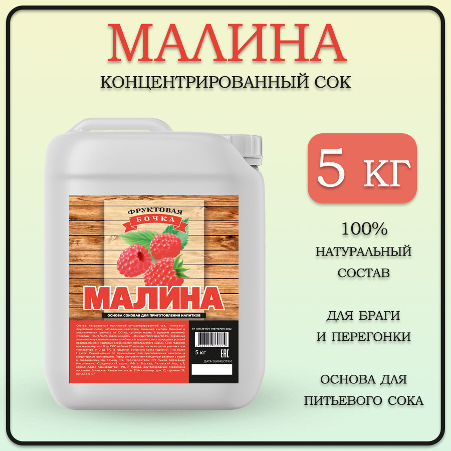 Сок концентрированный малиновый/Концентрат сока натуральный 100% малина, 5 кг/Фруктовая бочка интересное: