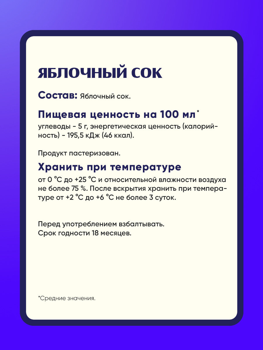 | Состав | яблочный сок |