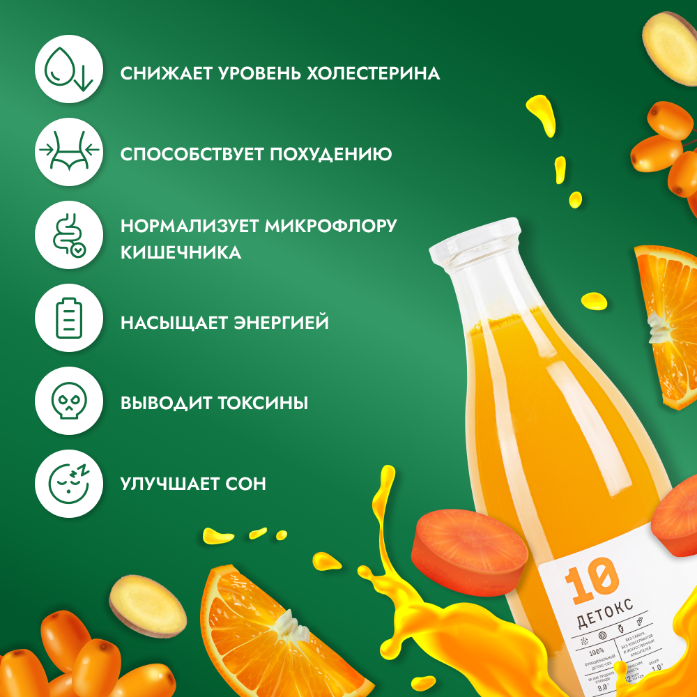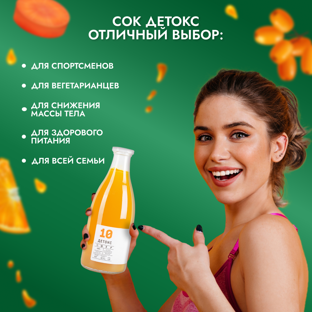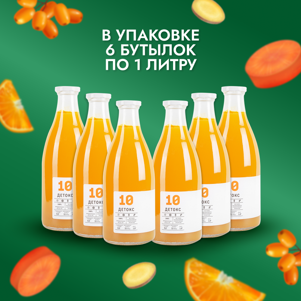 Сок детокс 10 натуральный без сахара для похудения без гмо имбирно-облепиховый апельсин, 6 шт по 1 л, 9670 г интересное: