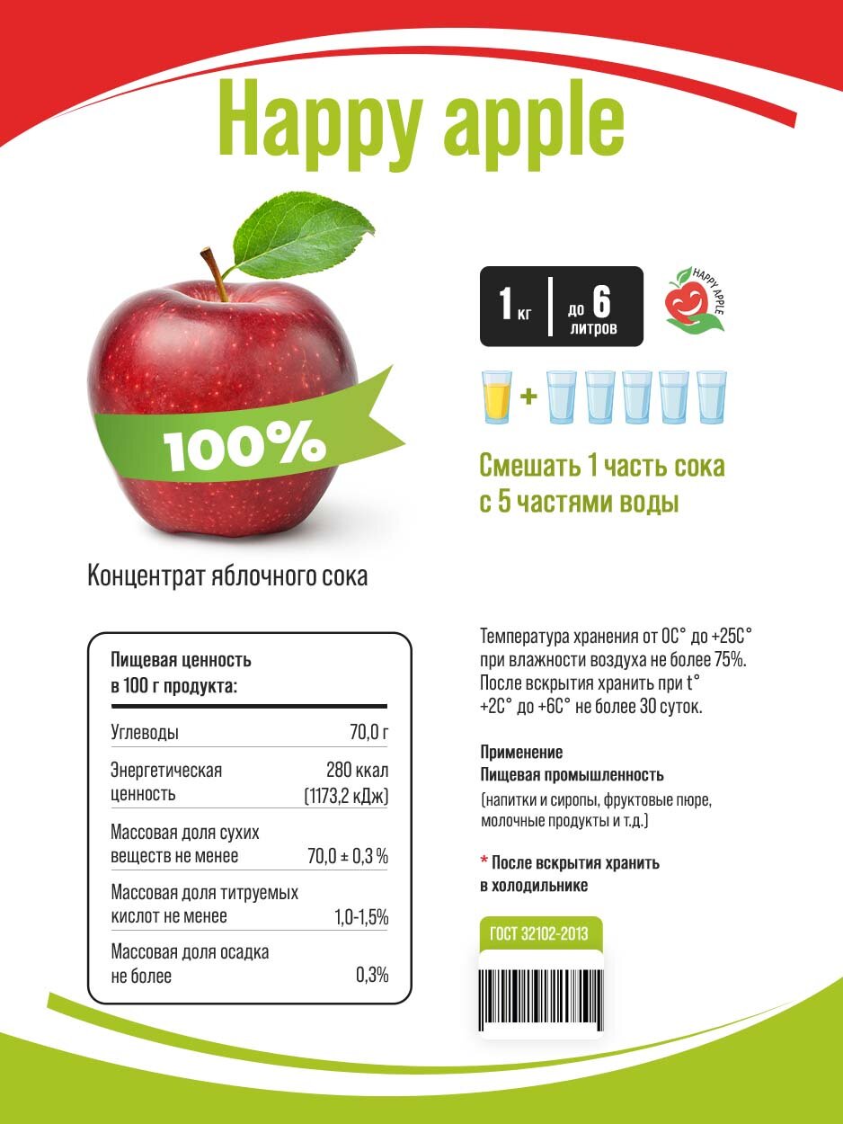 Сок концентрированный Яблочный красный 1 кг, кисл. 1,5% (Happy Apple) интересное: