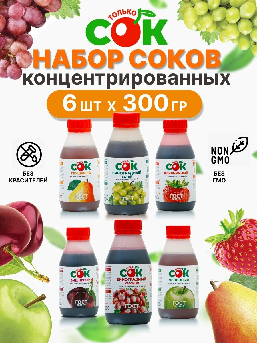Купить Концентрированный сок "Только СОК" набор эконом 6 вкусов по 300 г