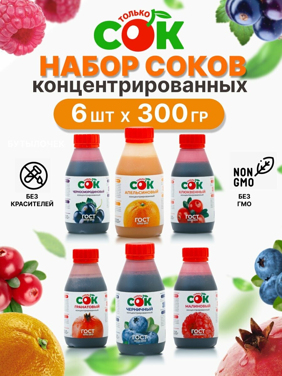 Купить Концентрированный сок "Только СОК" набор топ 6 вкусов по 300 г