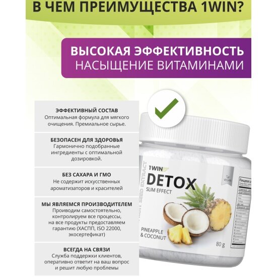 Купить 1WIN Детокс Detox Slim Effect с экстрактом грейпфрутовых косточек со вкусом ананас-кокос 32 порции