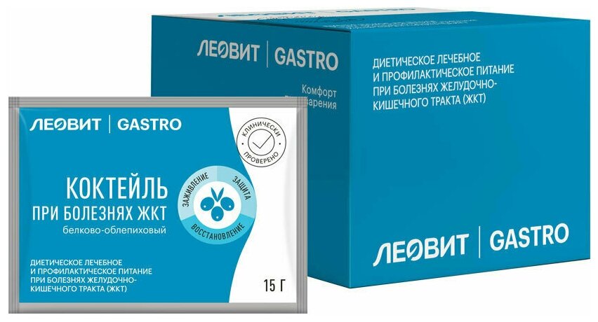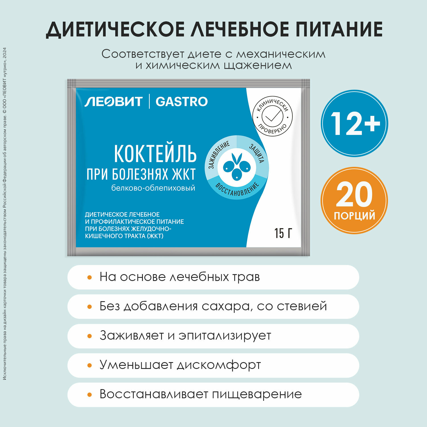 Коктейль при болезнях ЖКТ белково-облепиховый леовит Gastro . Шоубокс 20 шт. по 15 г. интересное: