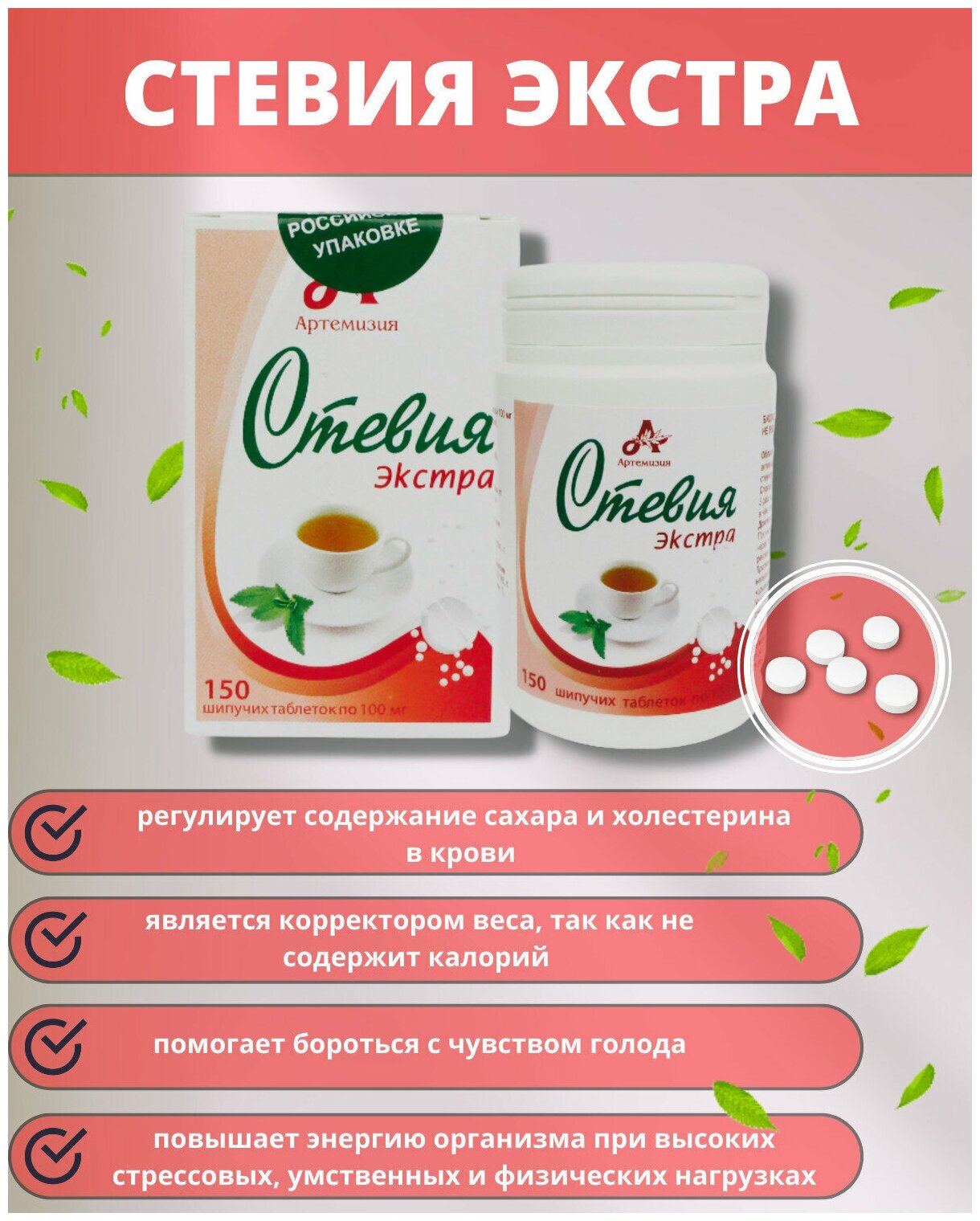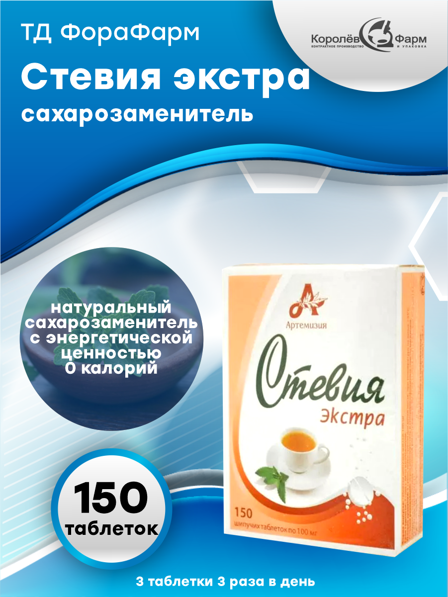 Стевия Экстра, 150 шипучих таблеток х 100 мг интересное: