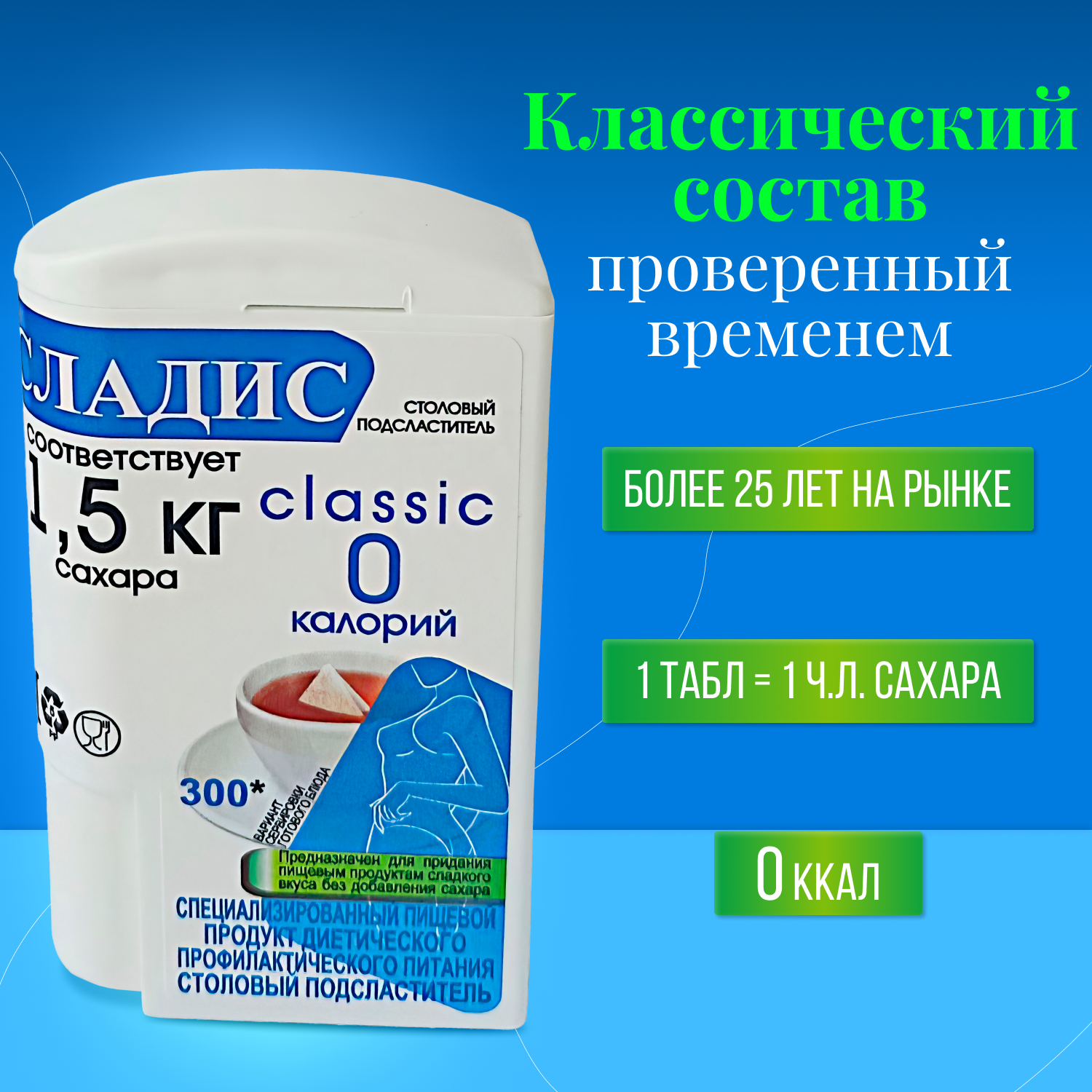 Cахарозаменитель Сладис Классик 300 таб. дозатор х 3 шт. интересное: