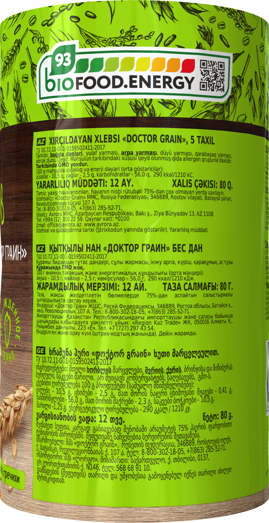 Хлебцы Пять злаков, 80гДоктор Граин, цельнозерновые, здоровый перекус интересное: