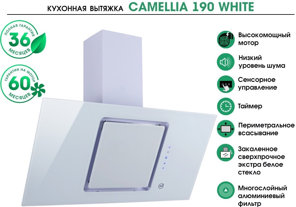 Кухонная вытяжка наклонная MBS CAMELLIA 190 WHITE интересное: