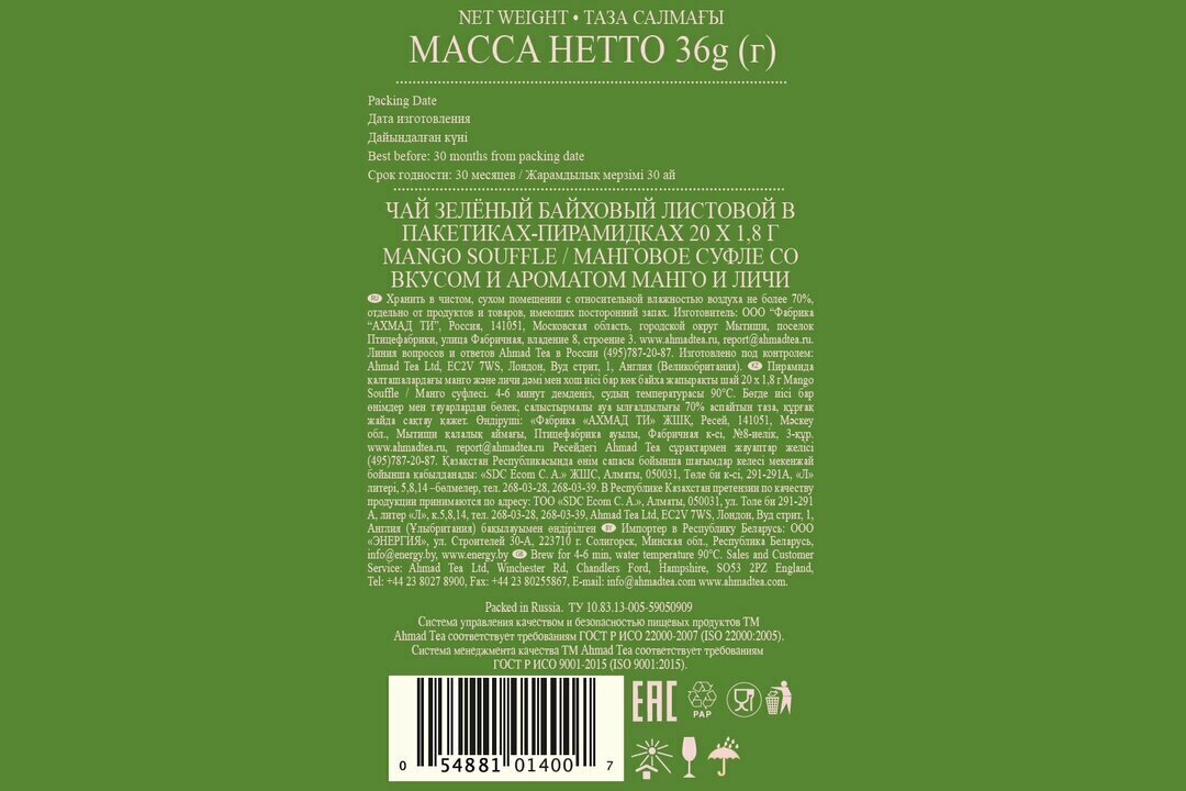| Производитель | Ahmad Tea |