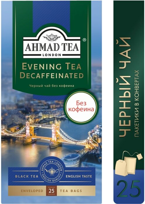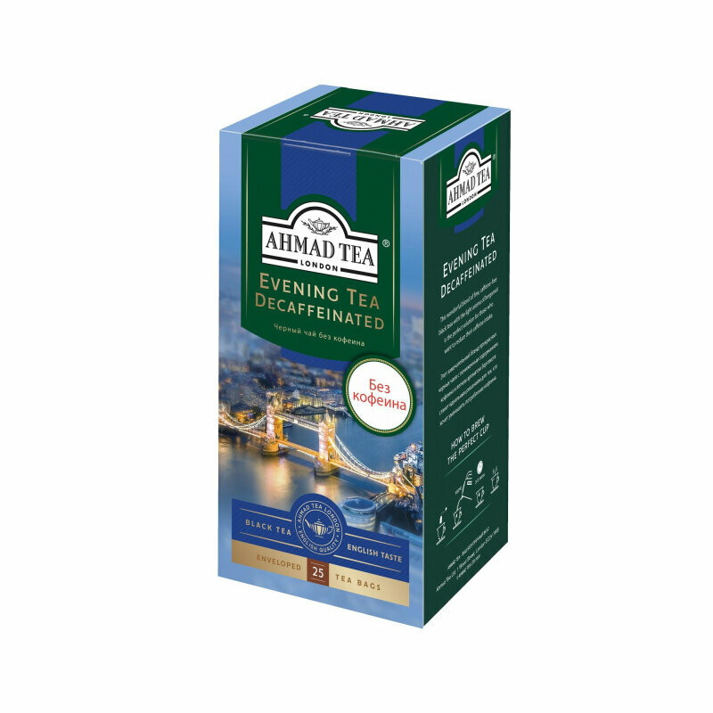 Чай "Ahmad Tea", Вечерний Чай, с ароматом бергамота, декоф., черный, пак. в к/фольги, 25х1,8г интересное: