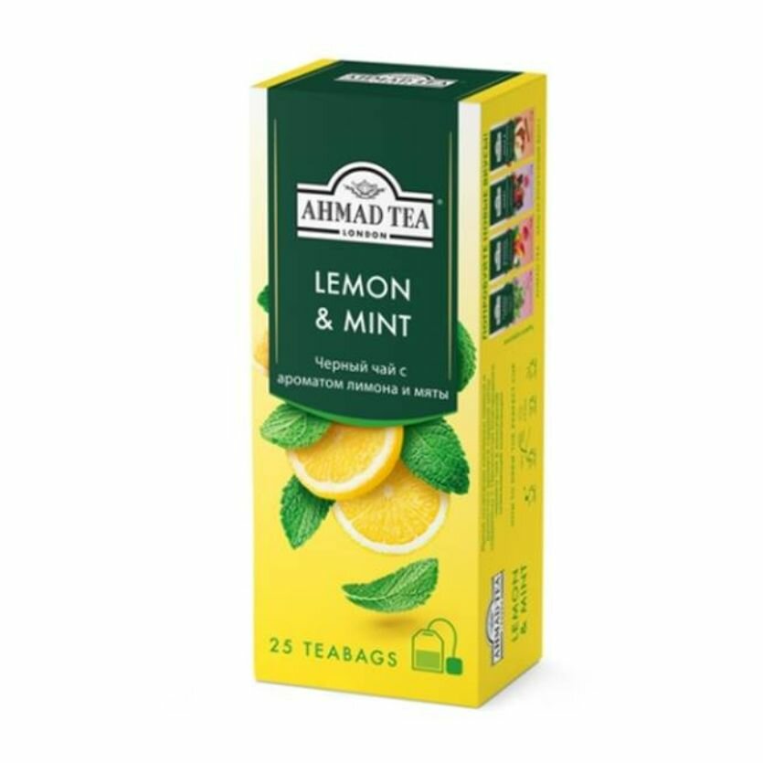 Купить 2781 Чай "Ahmad Tea", Чай Лимон и Мята, чёрный, пакетики с ярлычками, 25х1,5г