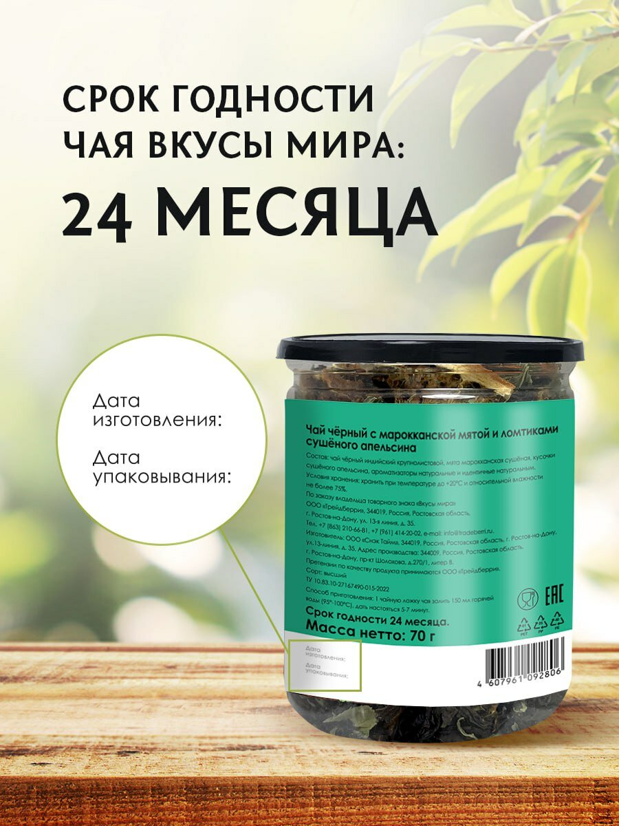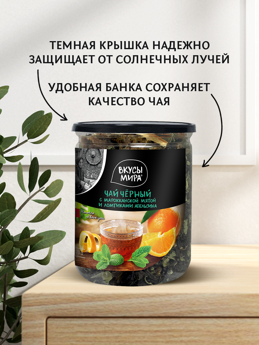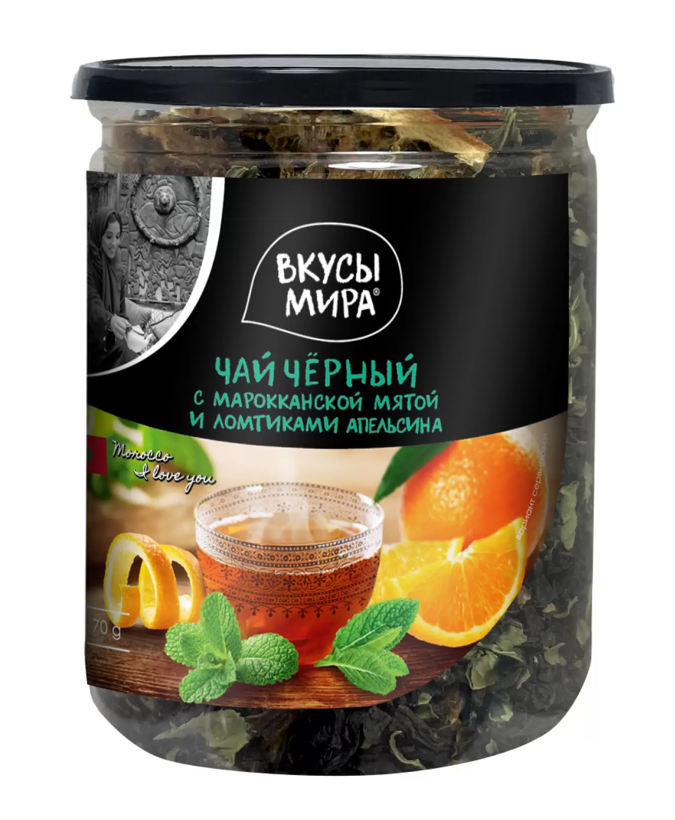 Чай черный Вкусы мира листовой с марокканской мятой и ломтиками апельсина 70 г среднелистовой, фруктовый напиток подарочный интересное: