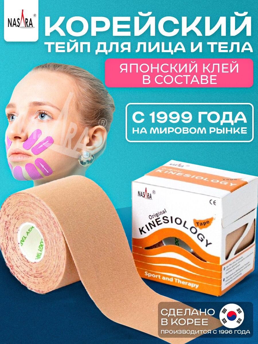 Купить Тейпы для лица и тела, NASARA, Кинезио тейп для похудения, Тейпы от отеков и морщин