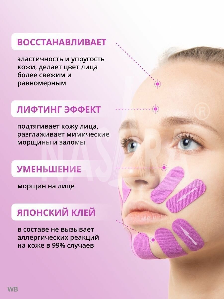 Тейпы для лица и тела, NASARA, Кинезио тейп для похудения, Тейпы от отеков и морщин