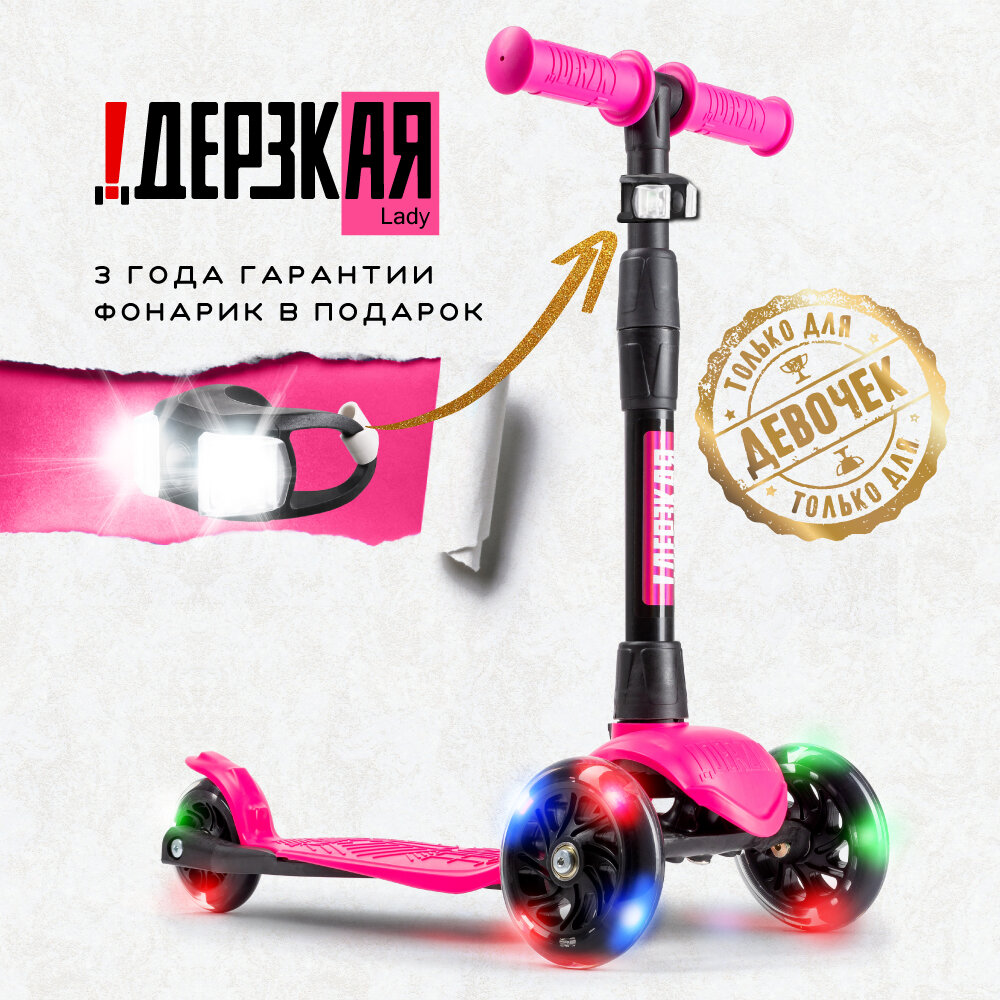 Купить Самокат трехколесный детский !Дерзкая Леди Стайл с фонариком.