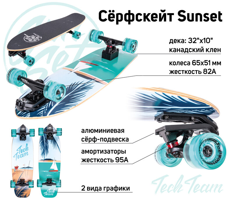 Скейтборд серфскейт TechTeam Sunset пляж интересное: