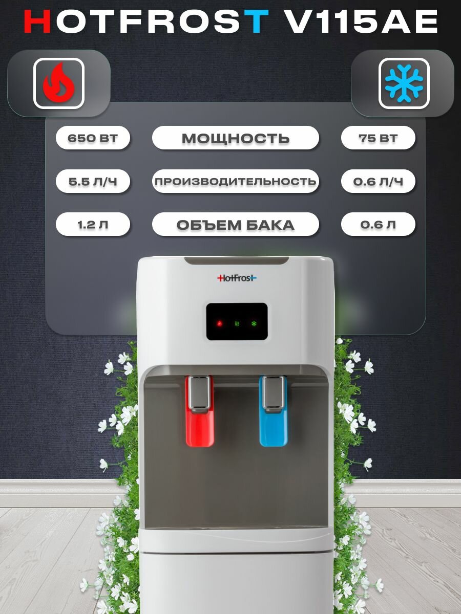 Кулер HOTFROST V115AE, напольный, электронный, «push» - кран, белый/серый [120211506]
