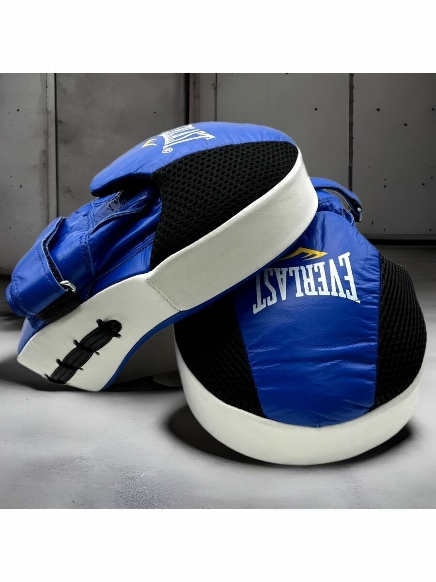 Лапы боксерские для бокса изогнутая Everlast, натуральная кожа-синий 2шт интересное: