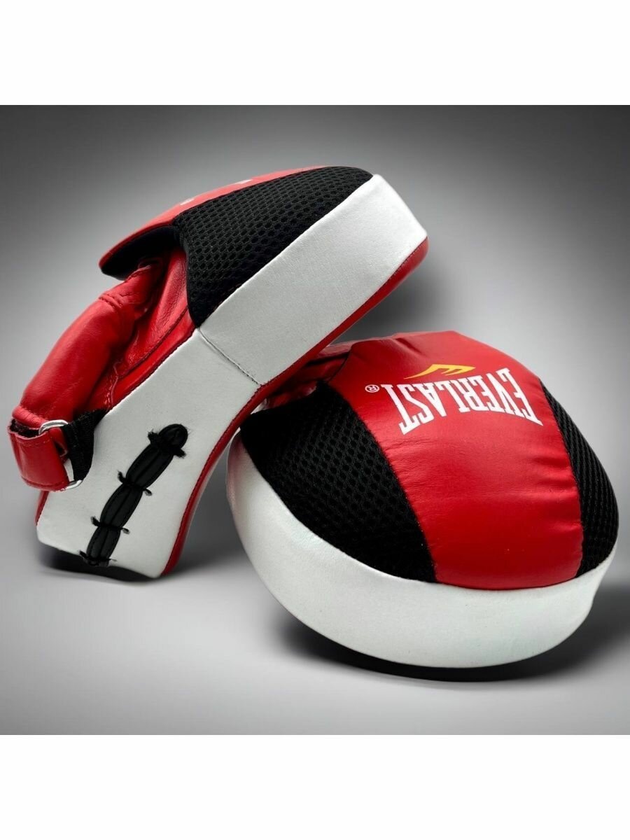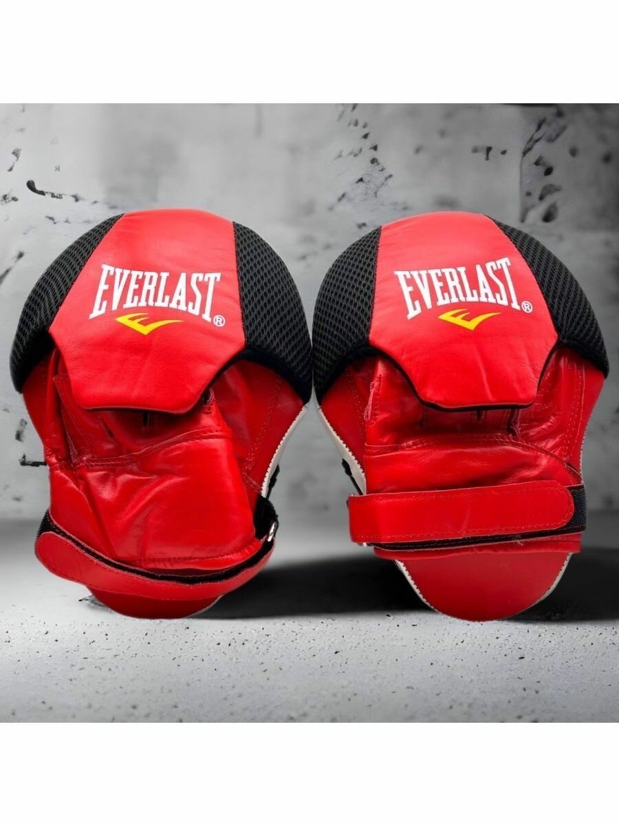 Лапы боксерские для бокса изогнутая Everlast, натуральная кожа-красный 2шт интересное: