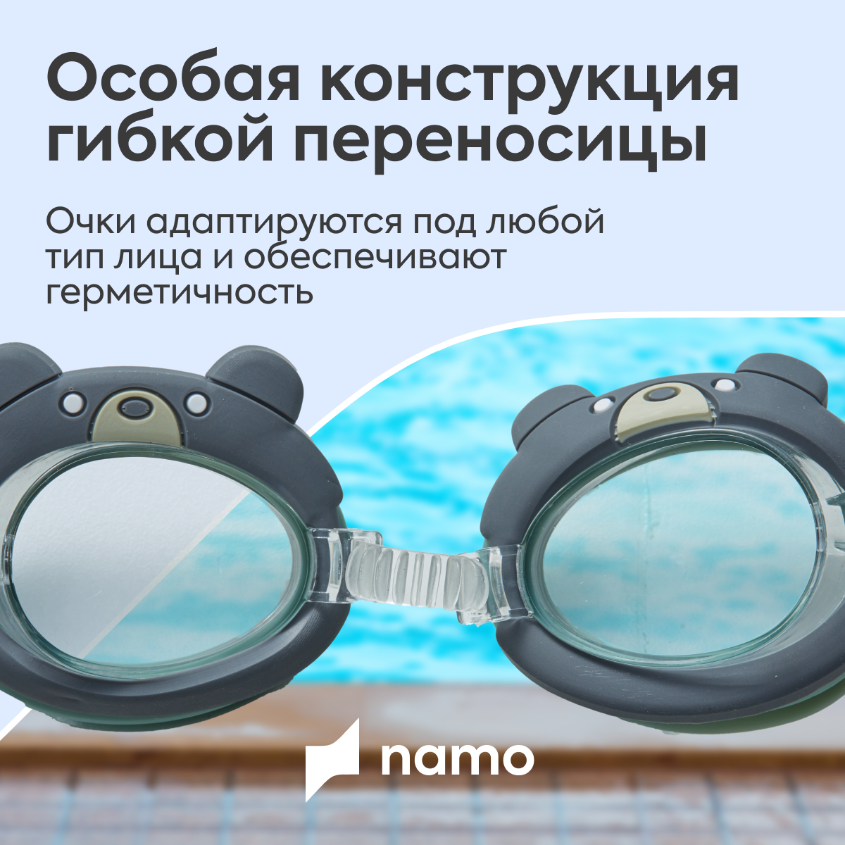 СохранитьОчки для плавания детские в бассейн Namo, серые интересное: