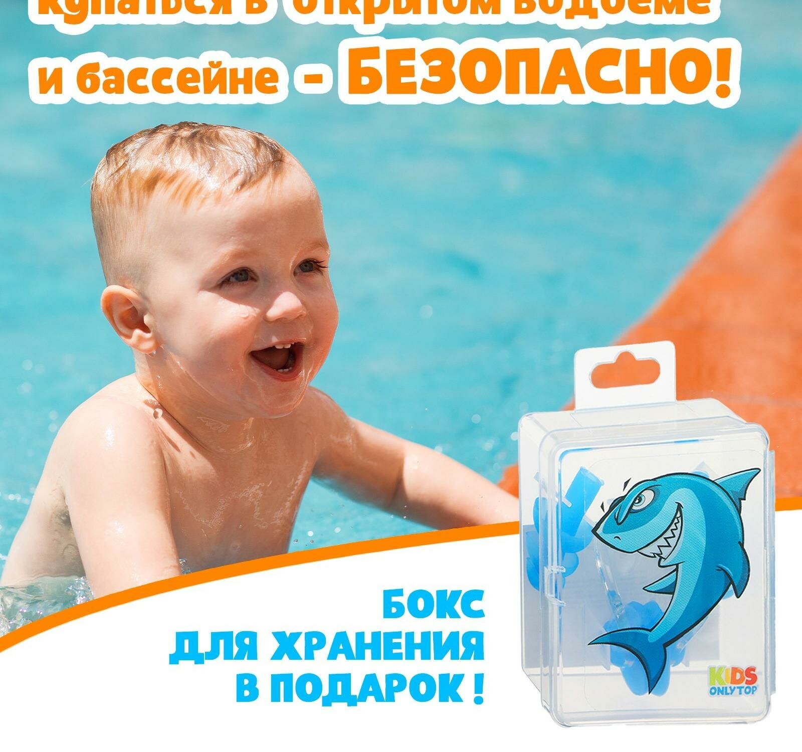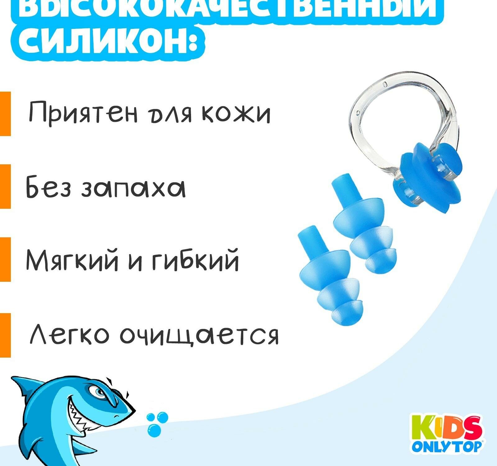 Купить Набор ONLYTOP "Акула", для плавания: зажим для носа, беруши, цвет синий