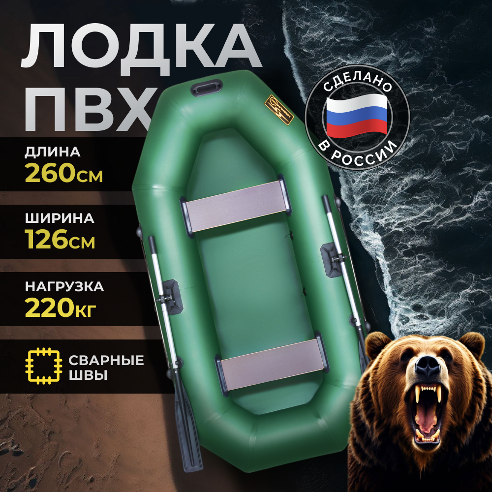 Купить Лодка ПВХ под мотор надувная двухместная гребная для рыбалки Magnum PRO 260 зелёная