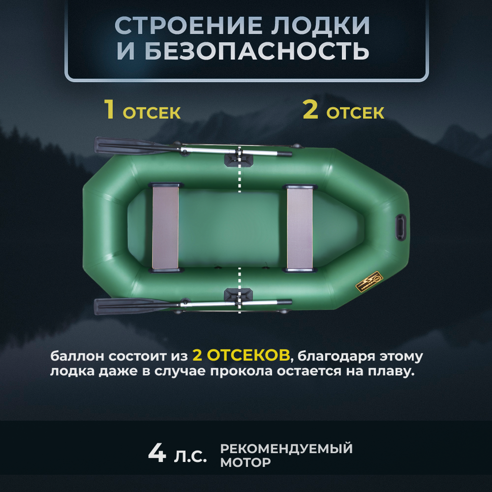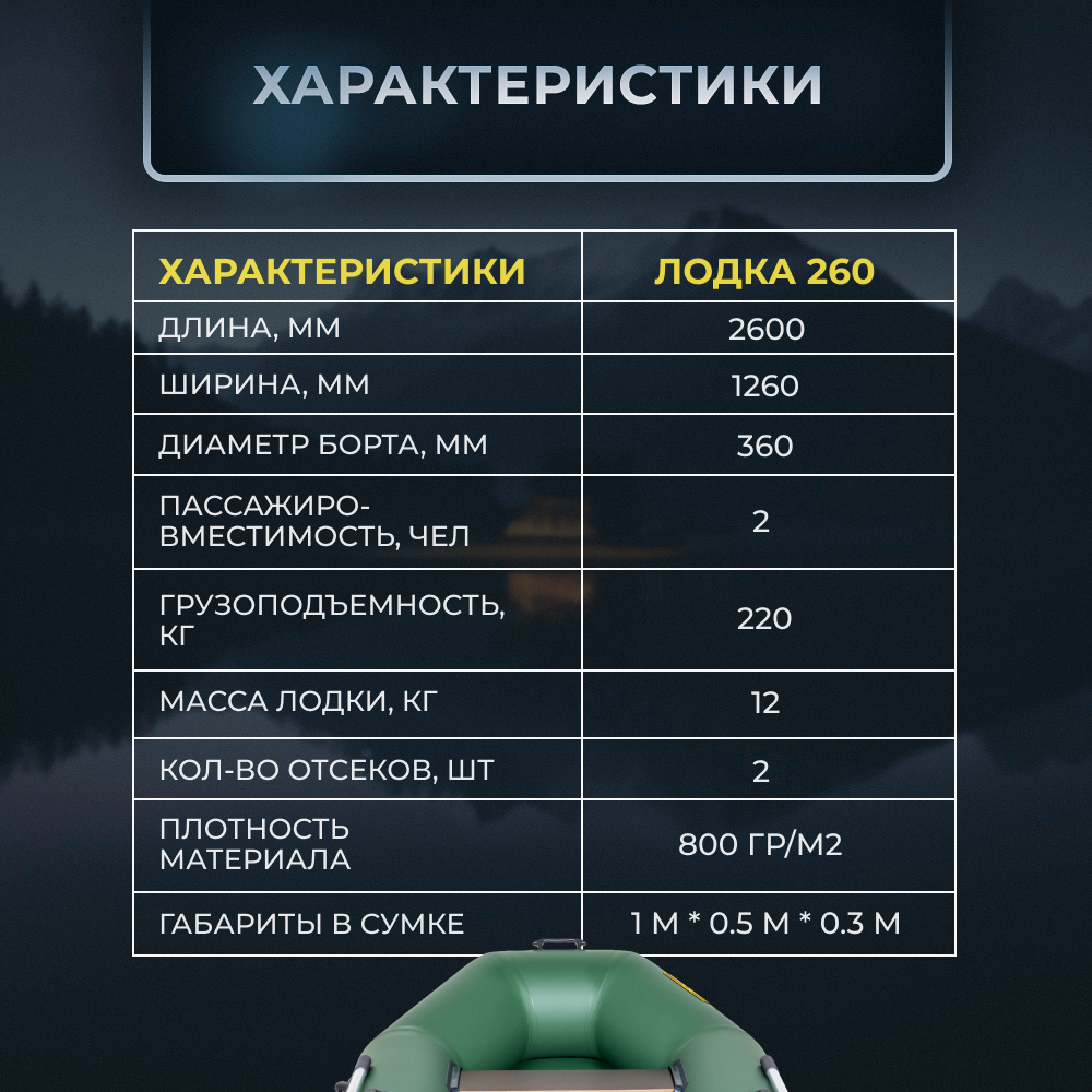 Лодка ПВХ под мотор надувная двухместная гребная для рыбалки Magnum PRO 260 зелёная интересное: