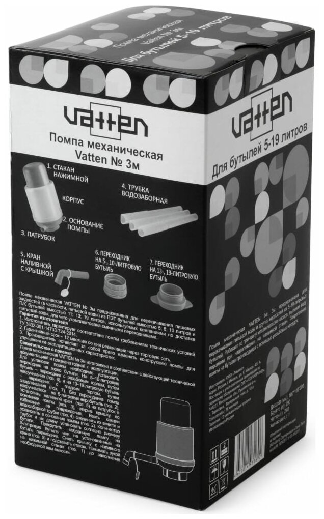Помпа для воды VATTEN №3М, механическая, для бутылей 5-19 л, 4874 Комплект - 1 шт .