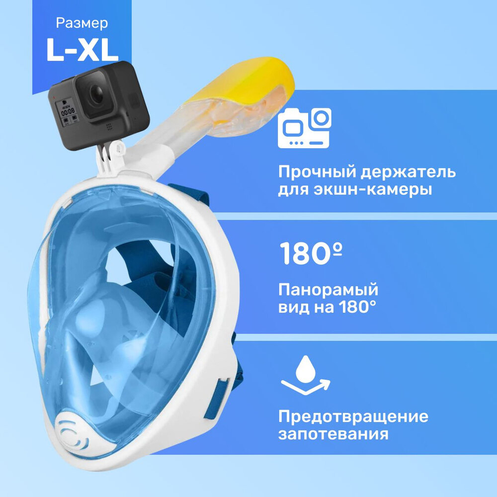 Подводная маска для плавания (снорклинга) Free Breath с креплением для экшн-камеры (синяя, размер L/XL) интересное:
