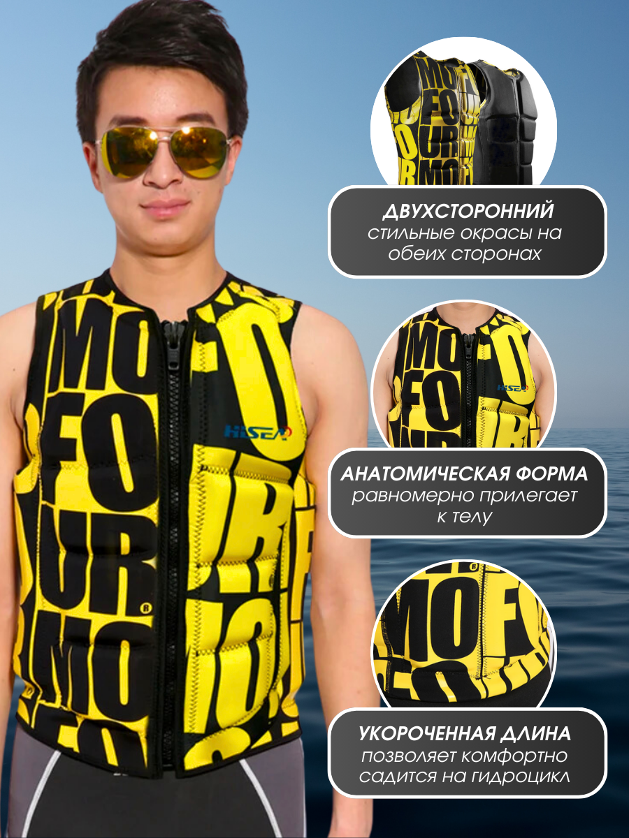 СохранитьЖилет спасательный неопреновый взрослый Hisea Sport для спорта, лодки, гидроцикла спасжилет страховочный - L интересное: