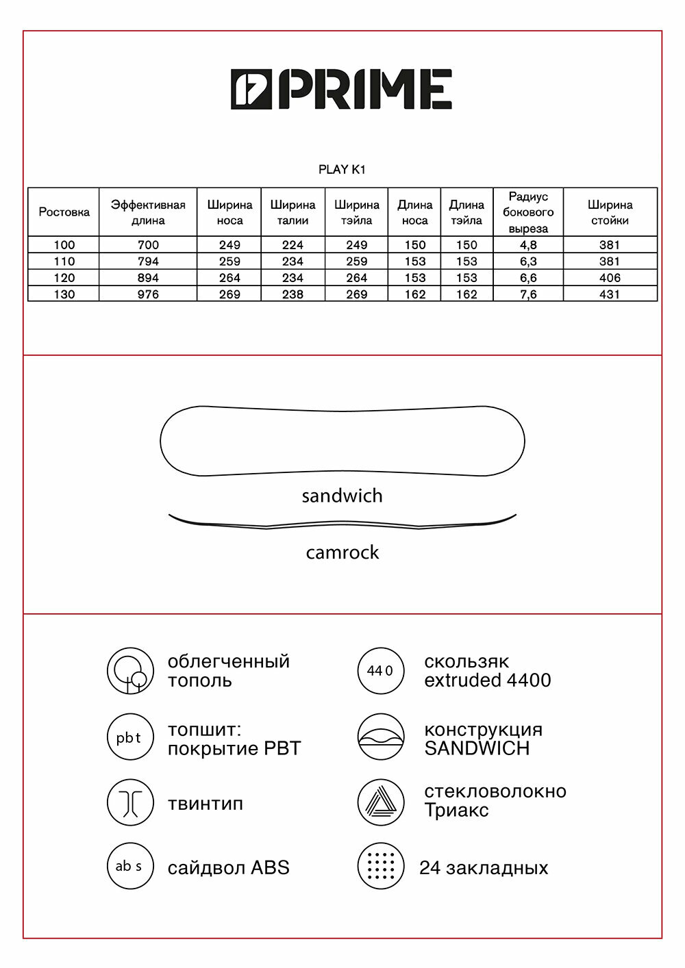 Сноуборд детский Prime kids - play, ростовка 110 интересное: