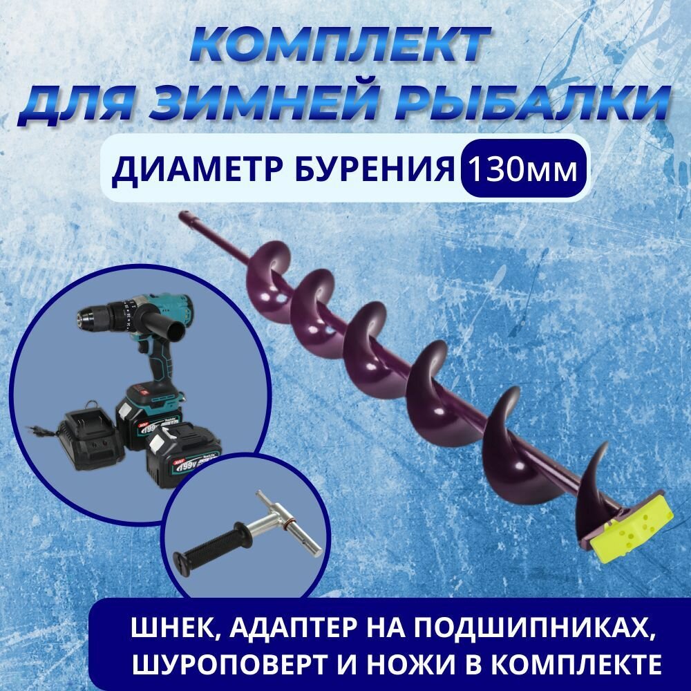 Комплект для льда. Шуруповерт + шнек иваново d.130 (правостороннее вращение) + адаптер + ножи интересное: