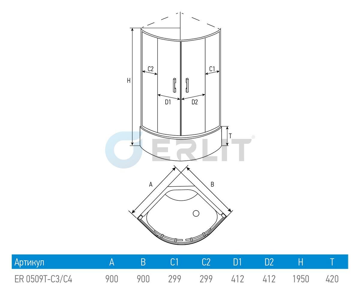 Душевой уголок Erlit ER0509T-C4 (900*900*1950)