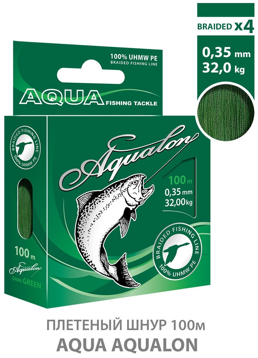 Купить Плетеный шнур для рыбалки AQUA Aqualon 100m 0.35mm 32kg темно-зеленый