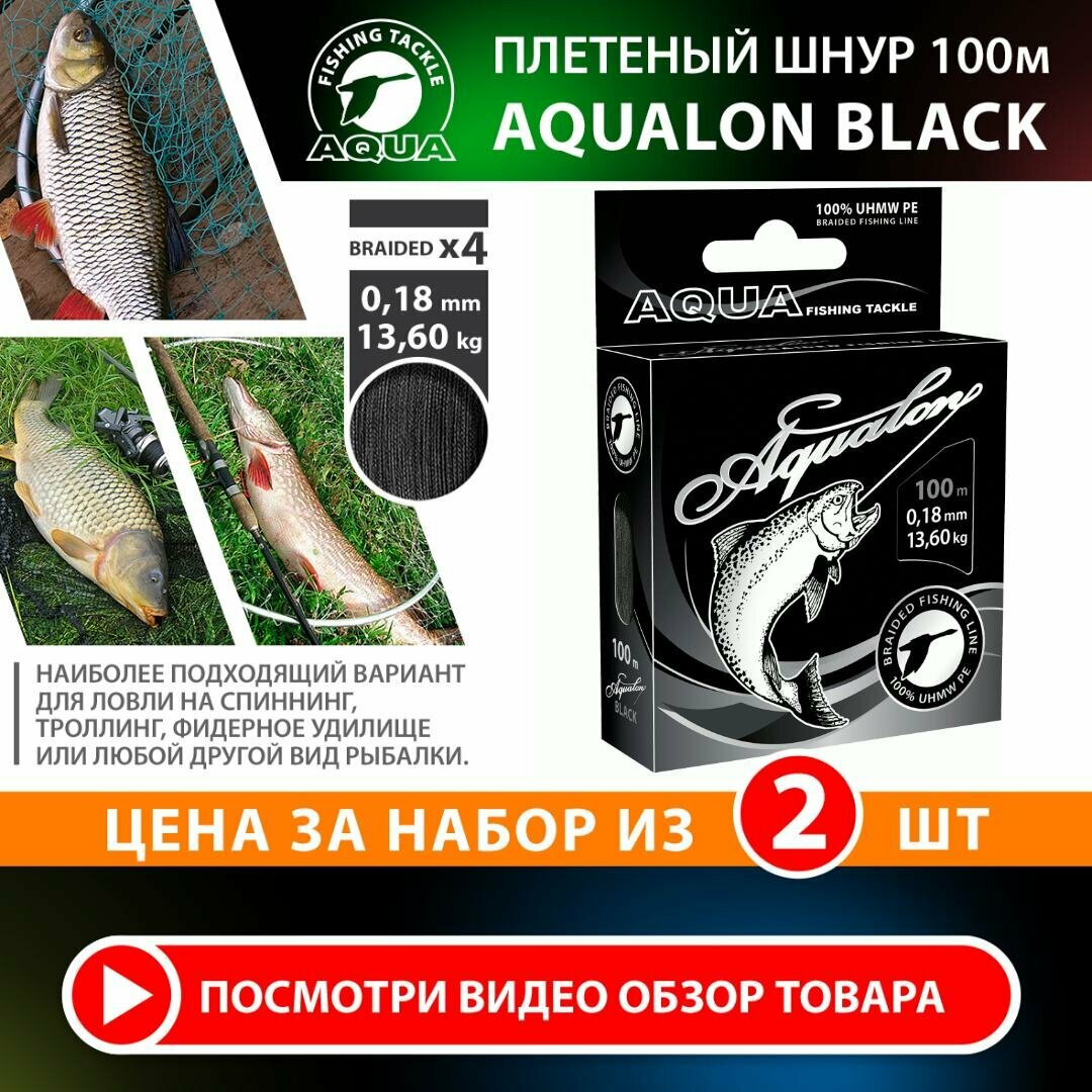 Купить Плетеный шнур для рыбалки AQUA Aqualon 100m 0.18mm 13.6kg черный 2шт