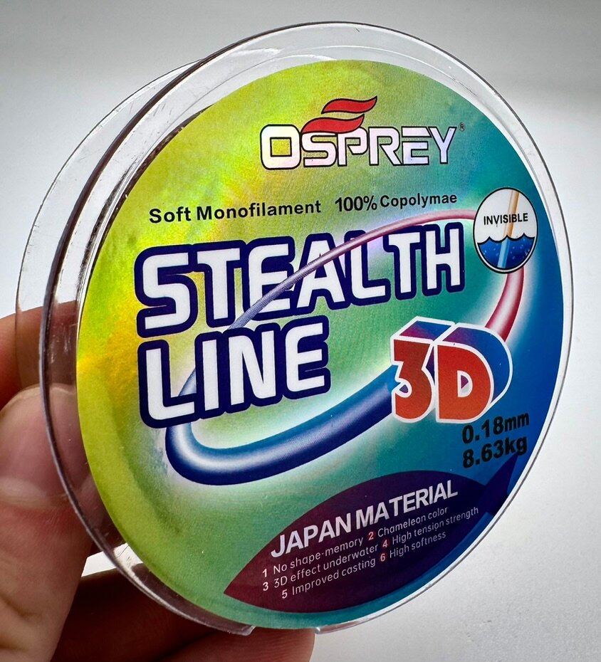 Леска для рыбалки монофильная хамелеон 3D Osprey Stealth Line 0.18 мм, 150 м, монолеска нейлоновая