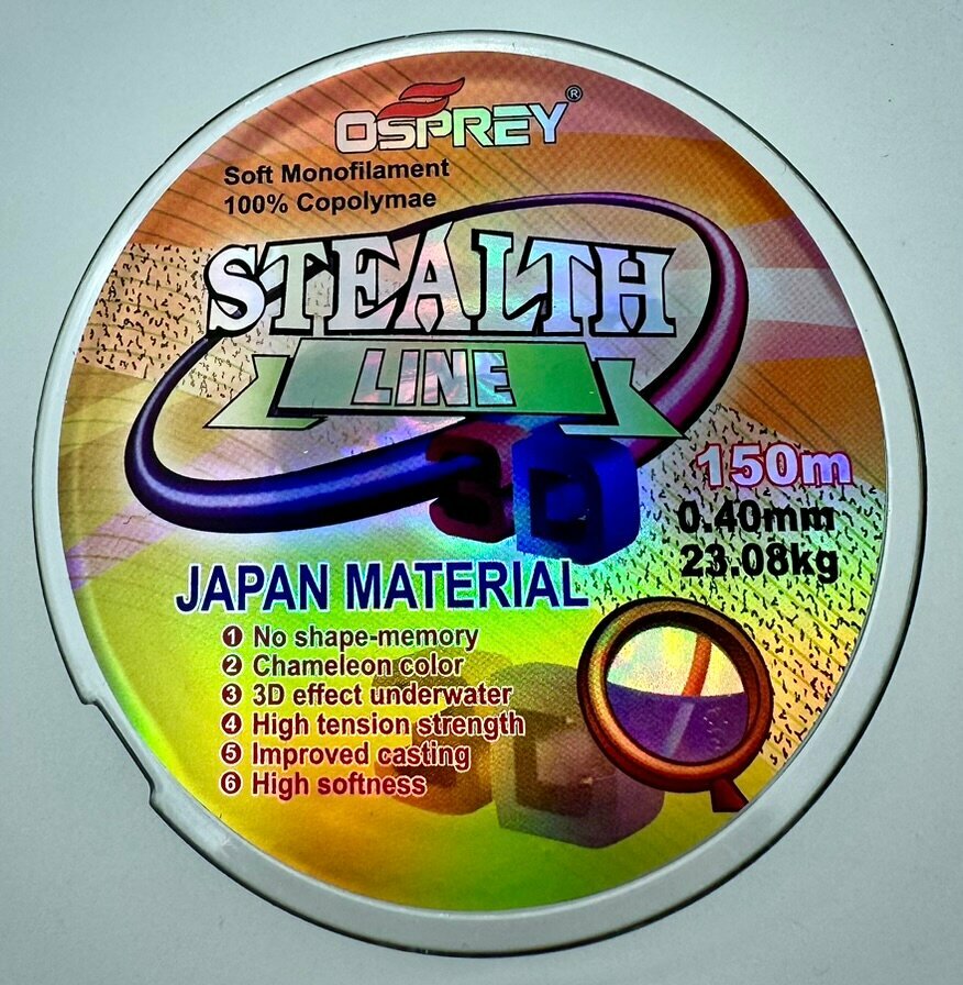 Ниже Вы можете прочитать отзывы на Леска для рыбалки монофильная хамелеон 3D Osprey Stealth Line 0.4 мм, 150 м, монолеска нейлоновая, ознакомится с подробными характеристиками, посмотреть интересные обзоры и фотографии на Леска для рыбалки монофильная хамелеон 3D Osprey Stealth Line 0.4 мм, 150 м, монолеска нейлоновая.