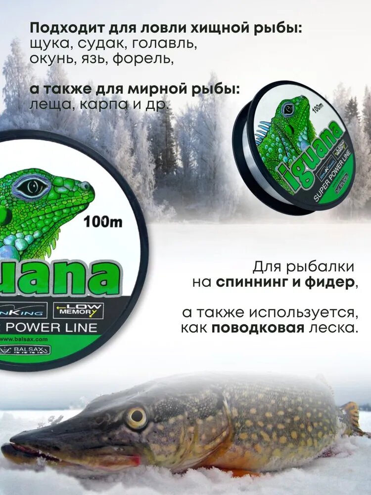 Универсальная монофильная прозрачная рыболовная леска Iguana, диаметр 0,22мм, длина 100м